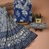 Unstitched Jaipuri Cotton Suit Set with beautiful hand-style prints and gota patti neck work. Includes 2.5m cotton top, 2.5m cotton bottom, and 2.5m cotton dupatta with zari lace border and tassels. Lightweight, breathable, and perfect for daily wear, office, and festive occasions.